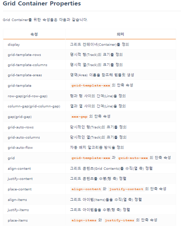 block특성의 grid container를 정의 |
