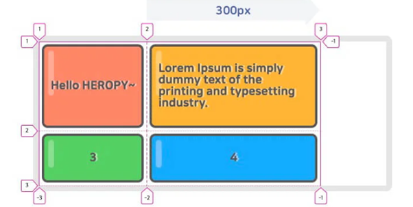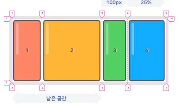 12.1.3 grid-rows/ grid-columns – 그리드 행/열을 하단의 그리드 선을 이용하여 자유롭게 배치할 수 있다.