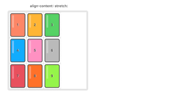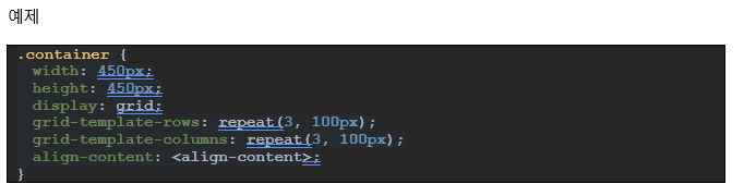 12.1.8. align-content – 그리드 컨텐츠의 수직 정렬을 정의한다. 그리드 items의 세로 너비가 그리드 컨테이너보다 작아야한다.