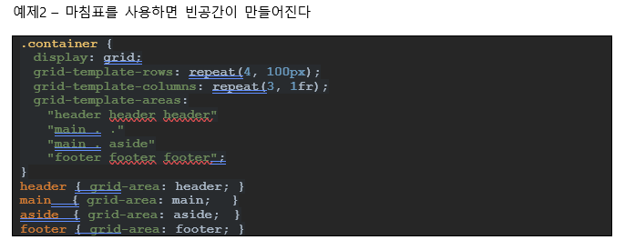 12.1.4. grid-template-areas – 지정된 그리드 영역이름(grid-area)을 참조해 그리드 탬플릿을 생성한다.